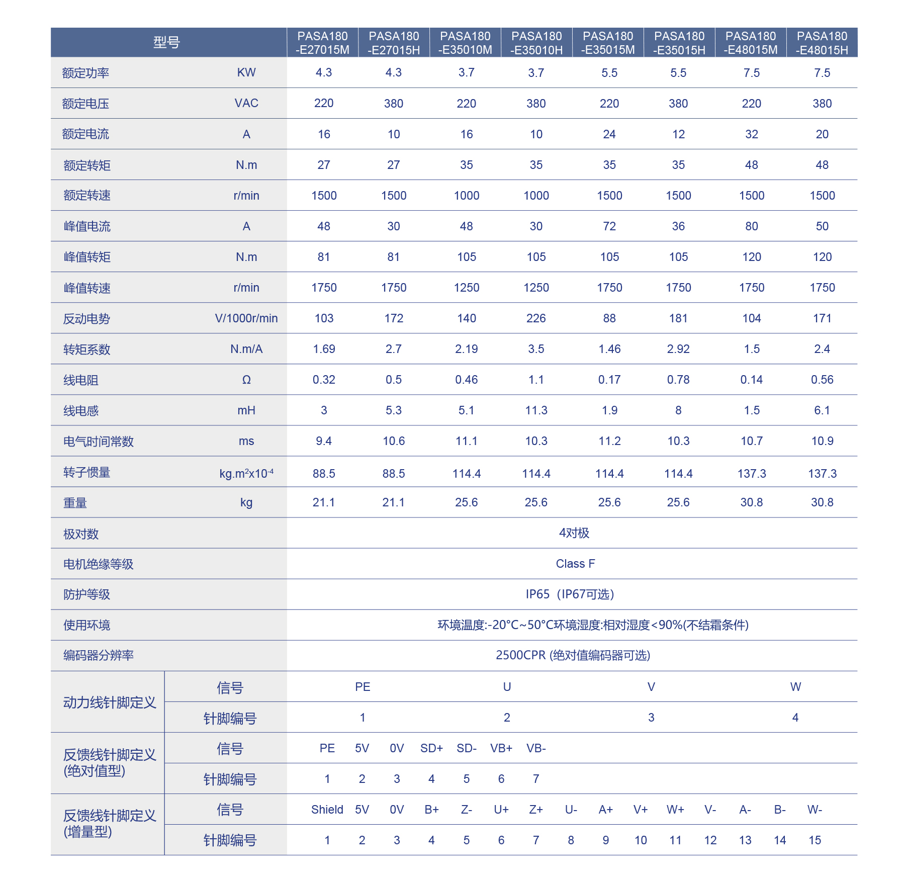 PASA180 Universal Series AC servo motors deliver 2.7-4.5kW power at 220/380V with rated torque from 17.2 to 27 N·m and speeds up to 2500rpm. Featuring IP65 protection (IP67 optional) and Class F insulation, they operate reliably in -20 to +50°C environments. Optional 23-bit absolute encoder ensures precise feedback, ideal for industrial automation, robotics, and precision control applications.