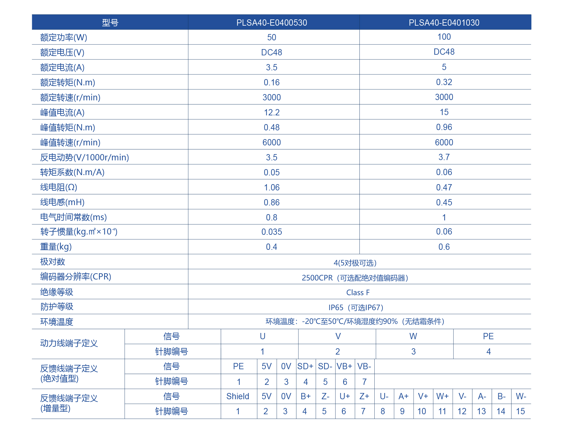 The PLSA40 Universal Series DC Servo Motor delivers 50W or 100W rated power, torque up to 0.32 N·m, and peak torque 0.96 N·m, with speeds up to 6000 rpm. Featuring IP65 protection (IP67 optional) and Class F insulation, it offers durable, precise performance with high-resolution encoder options.