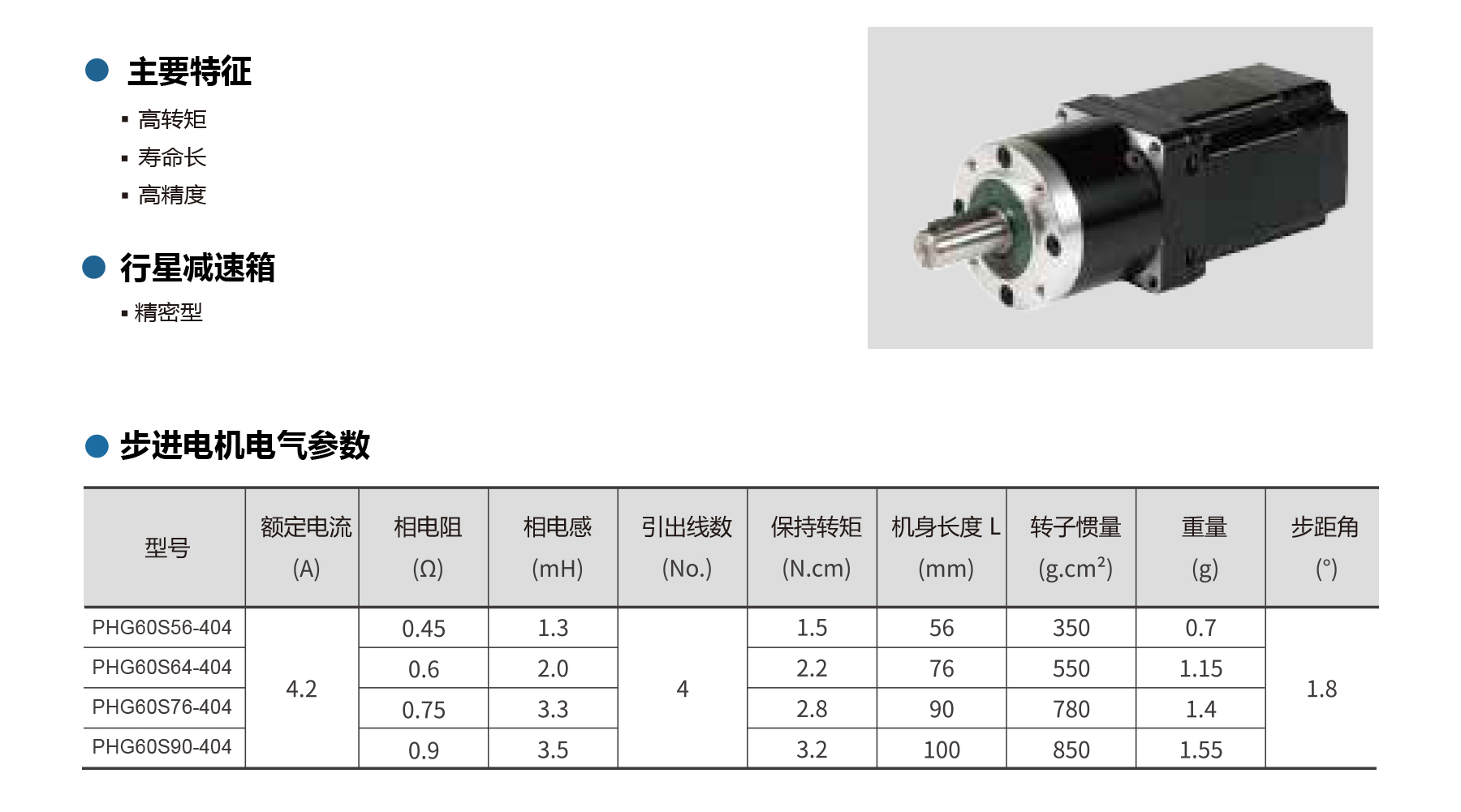 The PHG60S Series NEMA 24 stepper gear motors deliver high torque, long life, and precision performance with integrated planetary gearboxes. Featuring a 1.8° step angle, low backlash (≤25 arcmin), and quiet operation (≤60 dB), these motors provide smooth, reliable motion. With staged gear ratios, rated admissible torque ranges from 25 N·m to 40 N·m and efficiency up to 95%, making them ideal for CNC, and automation applications requiring compact, high-performance stepper gear motors.