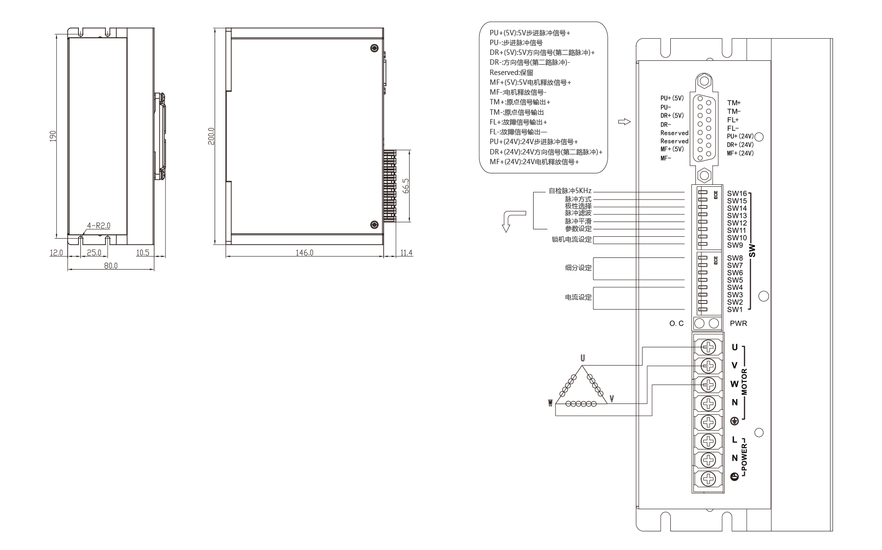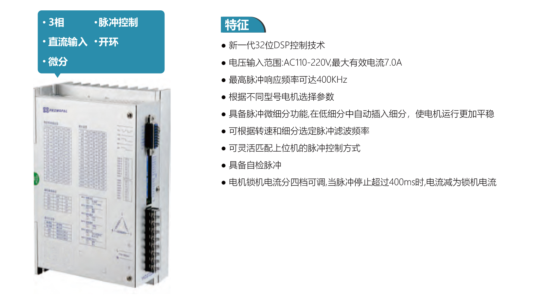 PST3722PH is a 3-phase AC driver (AC110–220V, ≤7.0A) with 32-bit DSP control for low noise and smooth low-frequency microsteps. It supports 16 constant-torque microsteps (up to 60,000 steps/rev), adjustable lock current, pulse filtering, and optical isolation, with full protection. Suitable for NEMA34–51 3-phase open-loop stepper motors.
