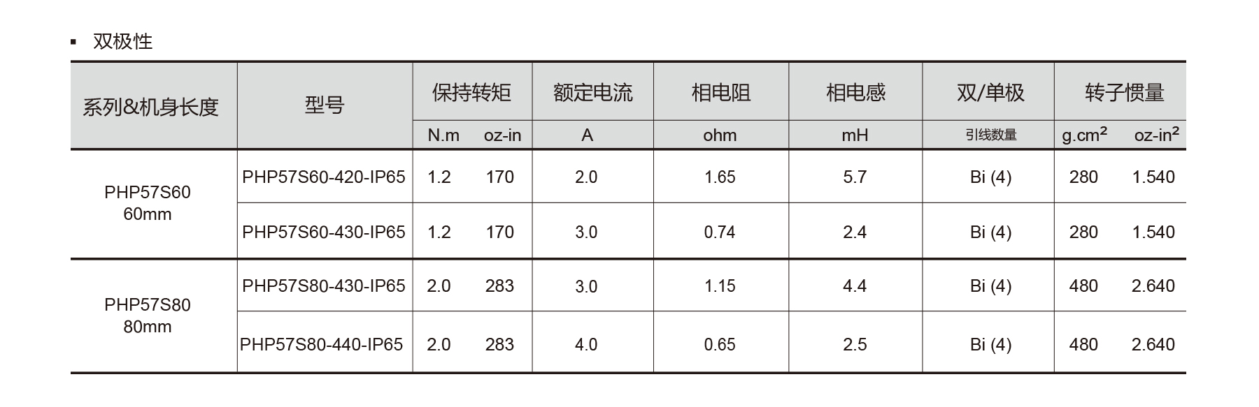 The PHP57S Series NEMA23 IP65 Stepper Motor delivers high torque up to 3.0 N·m, 1.8° step angle (±5%), and smooth motion with low radial and axial play. Available in 60–120 mm lengths with 1.2–3.0 A rated current, it’s ideal for automation, and harsh-environment applications needing powerful, precise, and reliable performance.