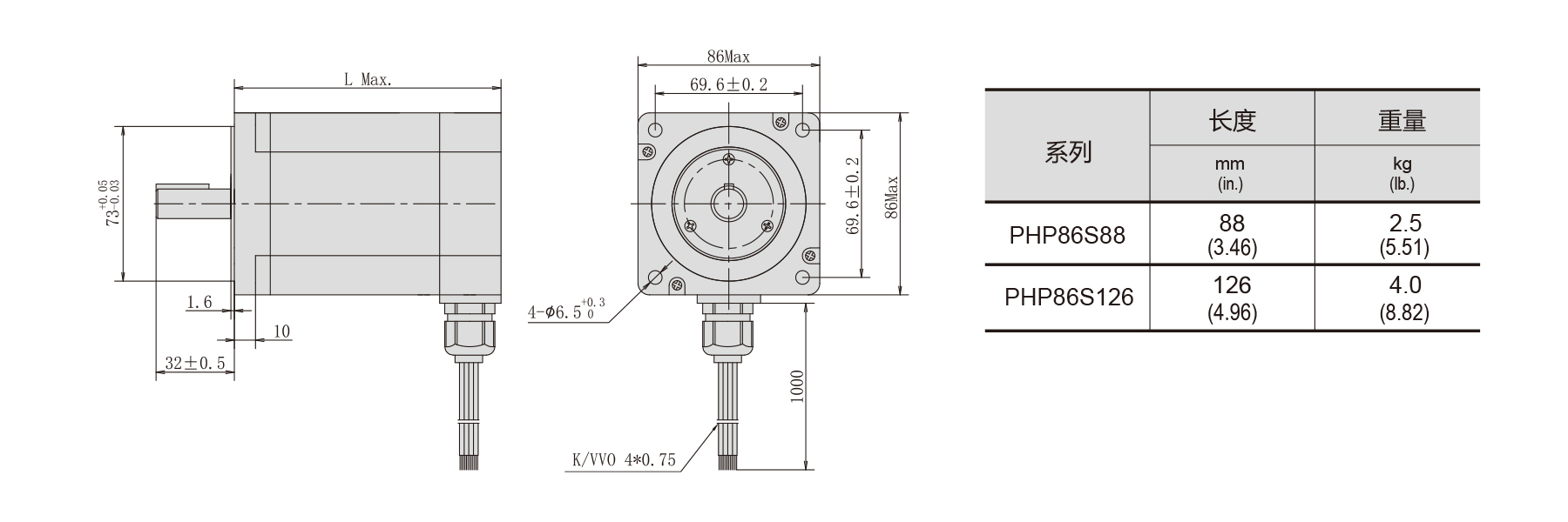The PHP86S Series NEMA34 IP65 Stepper Motor offers 1.8° step angle (±5%), high torque up to 12 N·m, smooth high-speed motion, and low radial/axial play. Available in 78–162 mm lengths with 3.0–10.0 A rated current, ideal for automation, and harsh-environment systems requiring powerful, precise, and reliable performance.