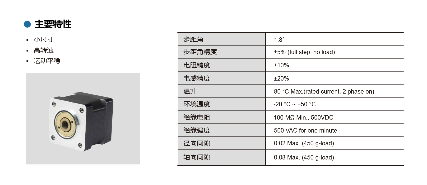 The PHH35Y series NEMA 14 hollow shaft stepper motors offer high-speed, smooth 1.8° stepping in a compact design. With ±5% step accuracy, low inertia, and stable performance across a wide temperature range, they are ideal for precision automation, and miniature motion control applications.