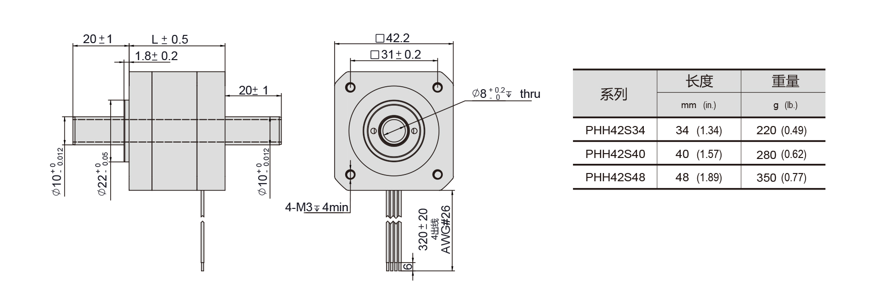 NEMA 17 · 1.8° · PHBR42S
