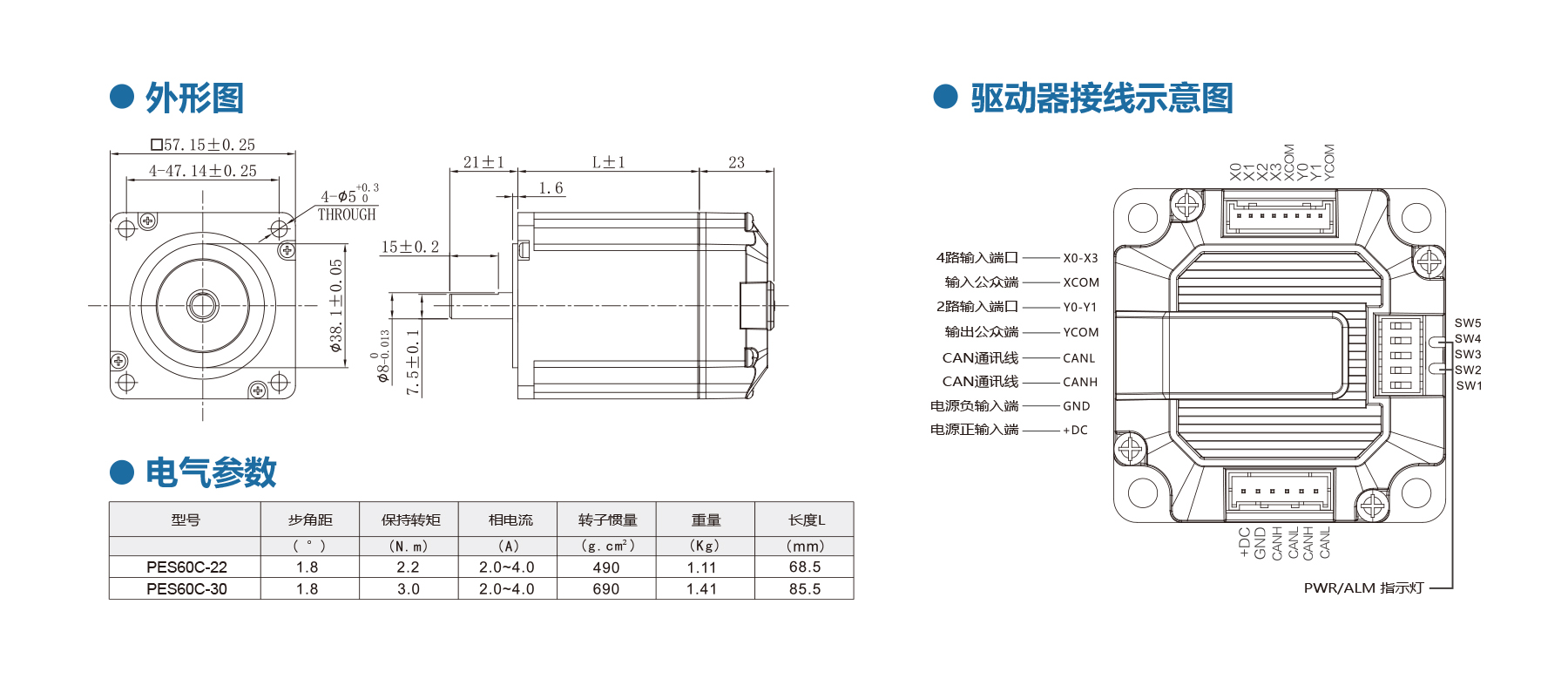 The NEMA24 Rear Mount PES60C Integrated Stepper Motor features a 32-bit DSP, CANopen (CiA402), 24–50 V, low torque ripple, and speeds up to 3000 RPM. With configurable position/alarm outputs and multiple I/O interfaces, it’s ideal for CNC and precise automation.