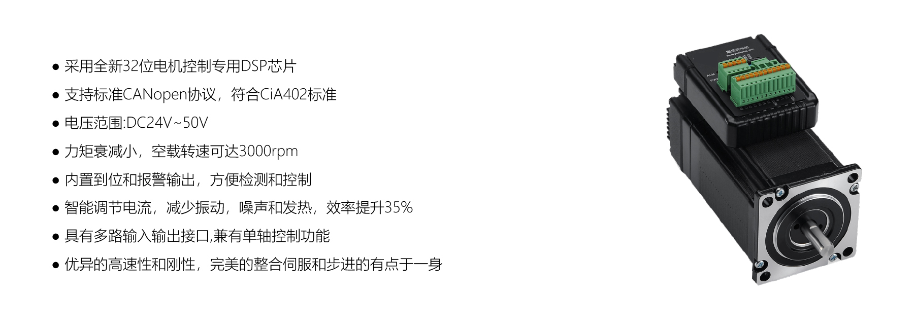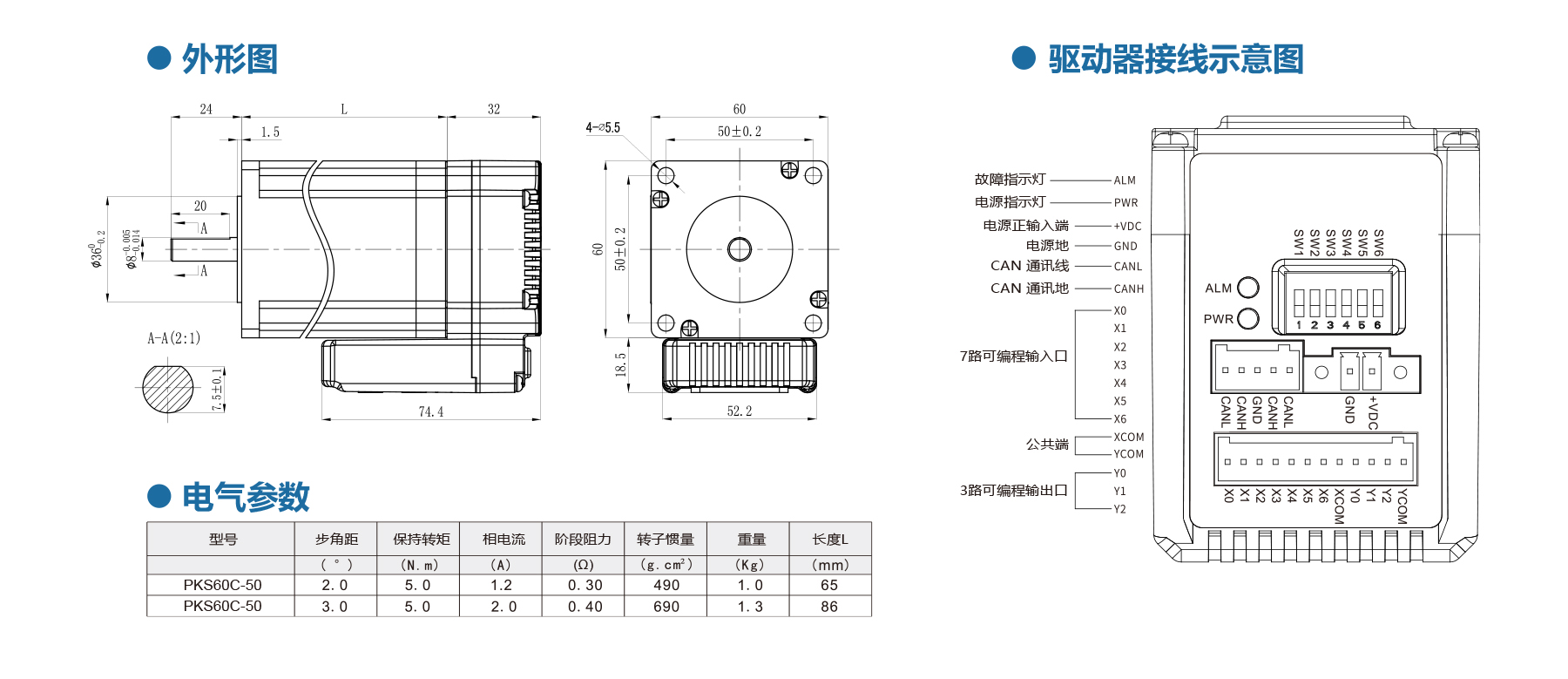 The NEMA24 Side Mount PKS60C Integrated Stepper Motor features a 32-bit DSP, CANopen (CiA402), 24–50 V, low torque decay, and speeds up to 3000 RPM. With built-in position/alarm outputs, intelligent current control and multiple I/O interfaces, it’s ideal for CNC and precise automation.