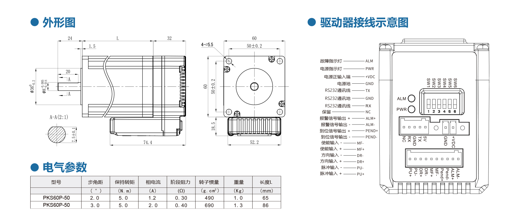 The NEMA24 Side Mount PKS60P Integrated Stepper Motor features a 32-bit DSP, 24–50 V, 16 microstepping levels, low torque decay, and speeds up to 3000 RPM. With 200 kHz pulse response, and built-in position/alarm outputs, it’s ideal for CNC and precise automation.