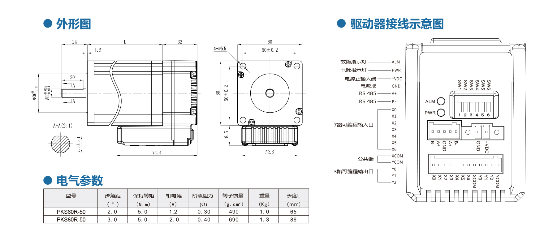 The NEMA24 Side Mount PKS60R Integrated Stepper Motor features a next-gen 32-bit DSP, MODBUS-RTU support, 24–50 V, low torque ripple, and speeds up to 3000 RPM. With built-in position/alarm outputs, intelligent current control, and multiple I/O interfaces, it’s ideal for CNC and automation.