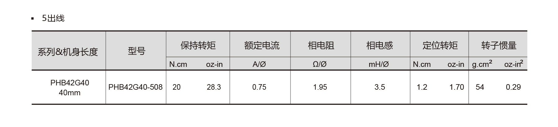 The PHB42G Series NEMA 17 5-phase stepper motors offer ultra-precise 0.36° step movement with ±5% full-step accuracy for smooth, low-noise operation. Compact and reliable, they provide stable holding torque with low inertia, ideal for miniature automation, and precision instruments. Rated for 5-phase operation with a maximum temperature rise of 80°C, insulation resistance ≥100 MΩ, and dielectric strength of 500 VAC for 1 minute, these motors ensure consistent performance. Shaft radial and axial play are tightly controlled at 0.02 mm and 0.08 mm. Available in 40 mm length with 5-wire connection, PHB42G motors are perfect for high-precision motion control applications.