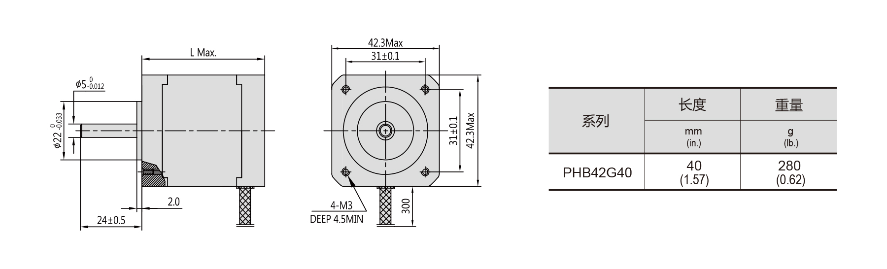 NEMA 17 · 1.8° · PHB42S