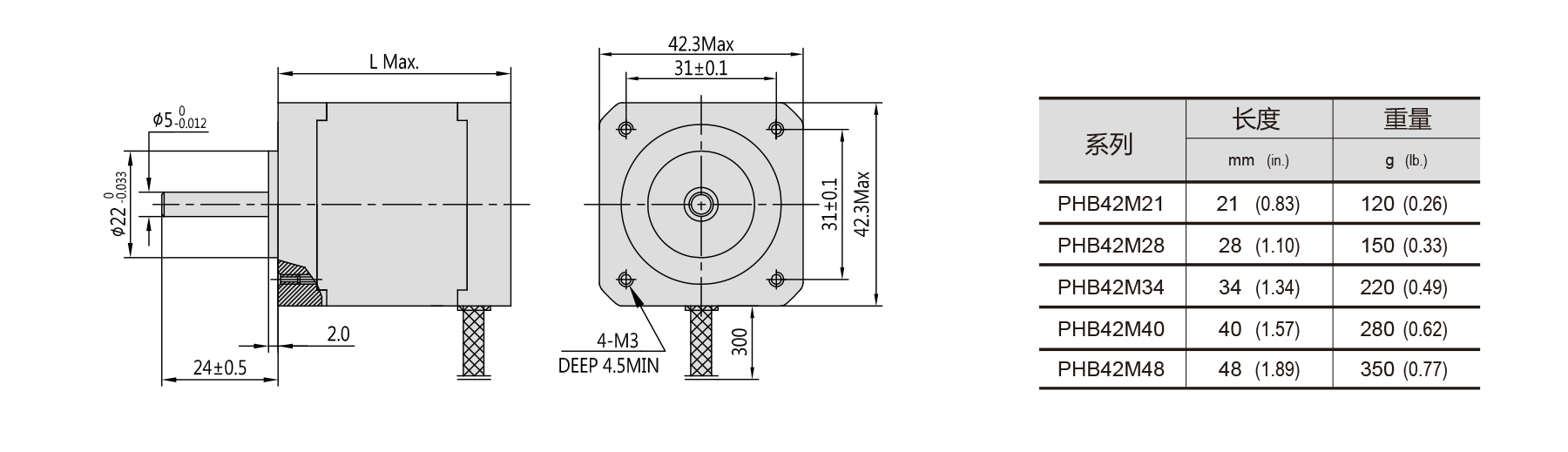 NEMA 17 · 1.8° · PHB42S