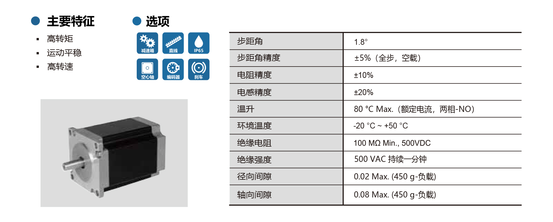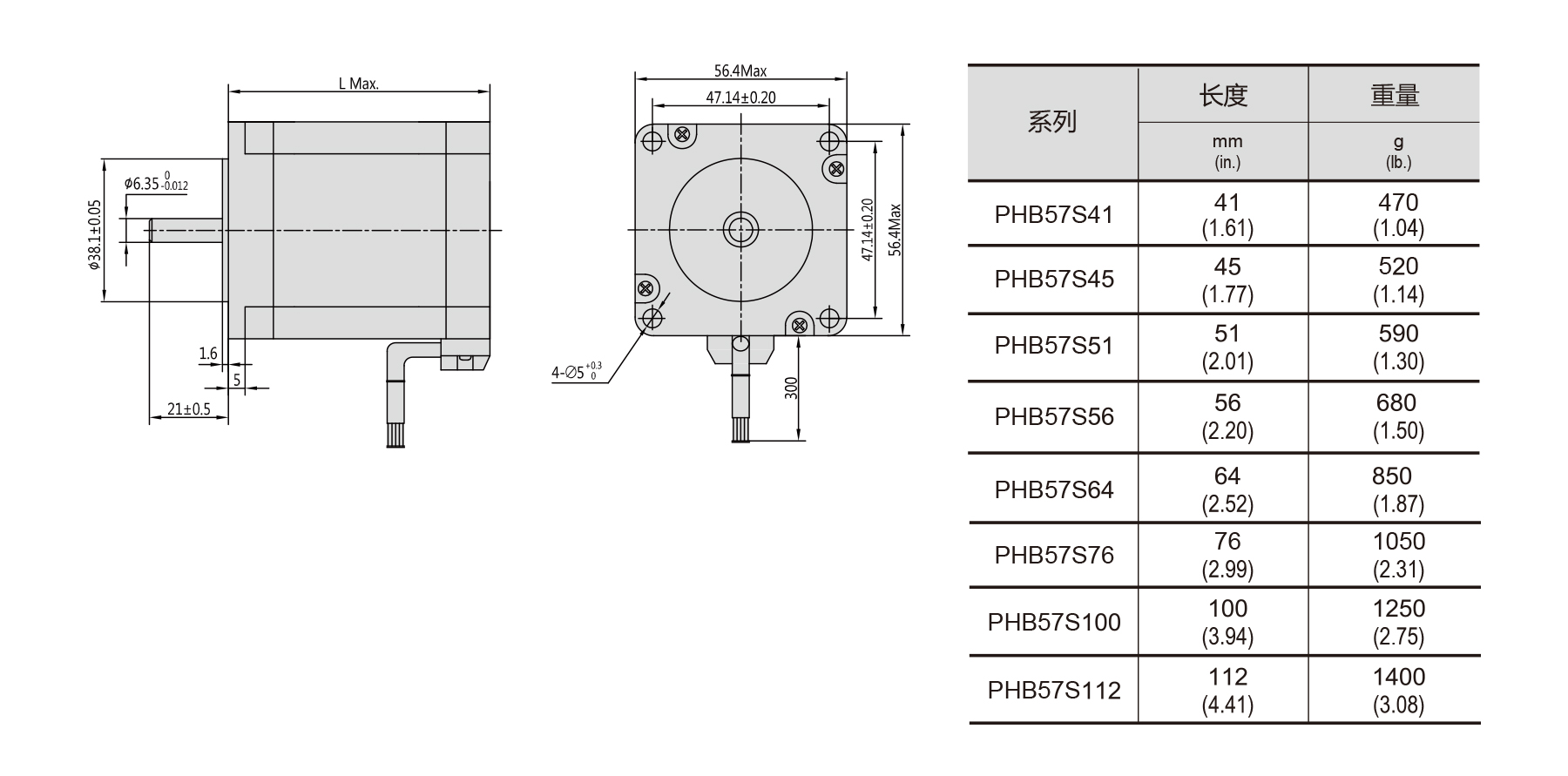 The PHB57S Series NEMA 23/57 2-phase stepper motors offer 1.8° step angle with ±5% full-step accuracy, high torque, smooth movement, and high-speed performance. Optional brake, encoder, gearbox available. Shaft radial/axial play ≤0.02/0.08 mm, max temperature rise 80°C, insulation ≥100 MΩ, dielectric strength 500 VAC/1 min. Available in 41–112 mm lengths, these motors provide reliable, precise motion control for CNC machines, HVAC, industrial automation, and other industrial applications requiring high torque and stable operation.