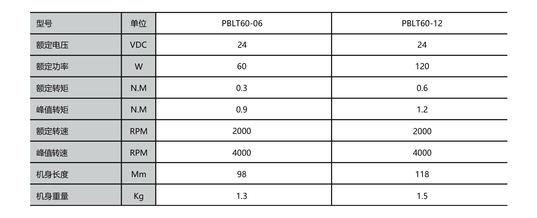 The PBLT60 series are compact, integrated brushless motors operating at 24V DC, offering rated power options of 60W and 120W. With rated torque ranging from 0.3 to 0.6 N.m and peak torque up to 1.2 N.m, these motors reach speeds up to 4000 RPM. Designed with precise motor control interfaces, including analog speed control and RS485 communication, they provide reliable performance in an all-in-one solution ideal for industrial automation.