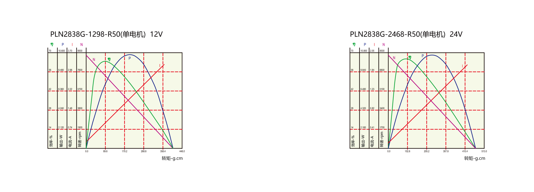 The PLN2838G-R50 Micro BLDC Geared Motor, Inner Rotor Series, provides an output of approximately 1–15 W and weighs around 160 g. It has 5 motor terminals: VCC, FG, GND, CW/CCW, and PWM. Operating voltage ranges from 6 V to 26 V depending on the model, delivering precise no-load speed, torque, and maximum efficiency. Typical applications include industrial equipment, power tools, automobiles, household appliances, personal care, communication, and medical devices.