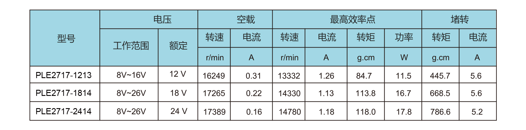 The PLE2717 is a micro brushless DC outrunner motor with 5–3 W output and a lightweight 50 g design. Equipped with PWM, FG, VCC, and GND terminals, it operates at 8–26 V and suitspower tools, automobiles, household appliances, personal care, communication, and medical devices, offering high efficiency and reliable performance.