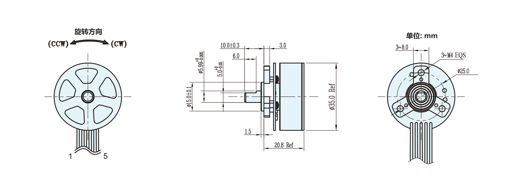 The PLE3525S is a micro brushless DC outrunner motor with sintered NdFeB magnets, weighing ~90 g and delivering 5–30 W output. Featuring VCC, FG, CW/CCW, GND, and PWM terminals, it operates from 5–26 V and is ideal for power tools, automobiles, household appliances, personal care, communication, and medical devices, offering compact, efficient, and reliable performance.