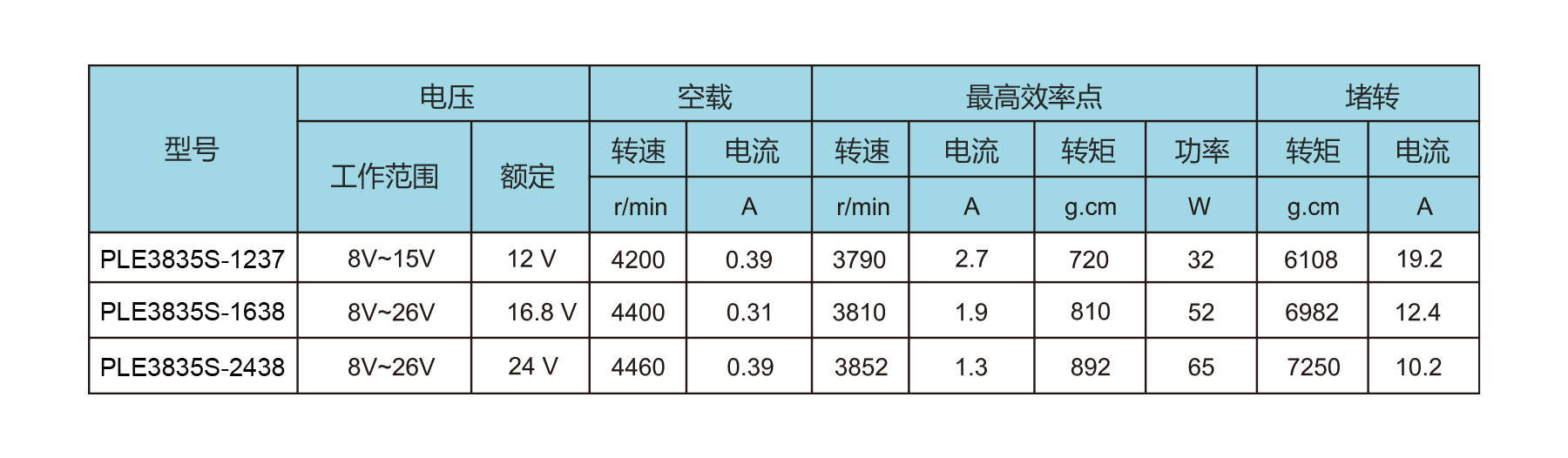 The PLE3835S micro brushless DC outrunner motor (Sintered NdFeB) delivers 10–80 W output with high torque and efficiency. Operating at 8–26 V and weighing ~150 g, it features VCC, FG, CW/CCW, GND, and PWM terminals, ideal for power tools, automobiles, household appliances, personal care, communication, and medical devices, and medical devices.