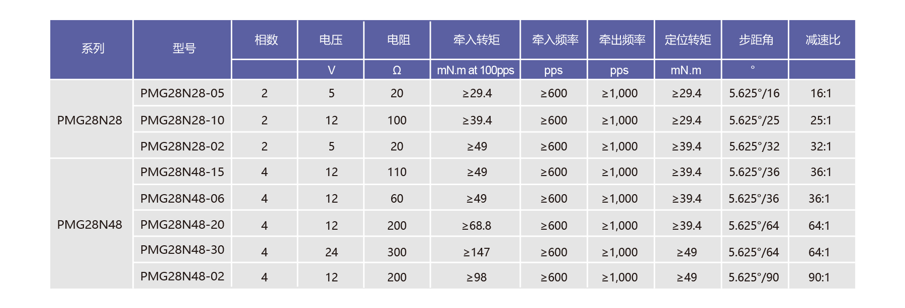 The PMG28N Series is a Ø28 mm permanent magnet stepper motor with built-in gears, ±8% step angle accuracy, ±10% resistance, and ±20% inductance. Compact and high-torque, it supports low-speed operation with gear ratios from 16:1 to 90:1, ideal for mobile equipment, handheld devices, analytical instrument, and precision automation, and machinery between -10°C and +50°C.