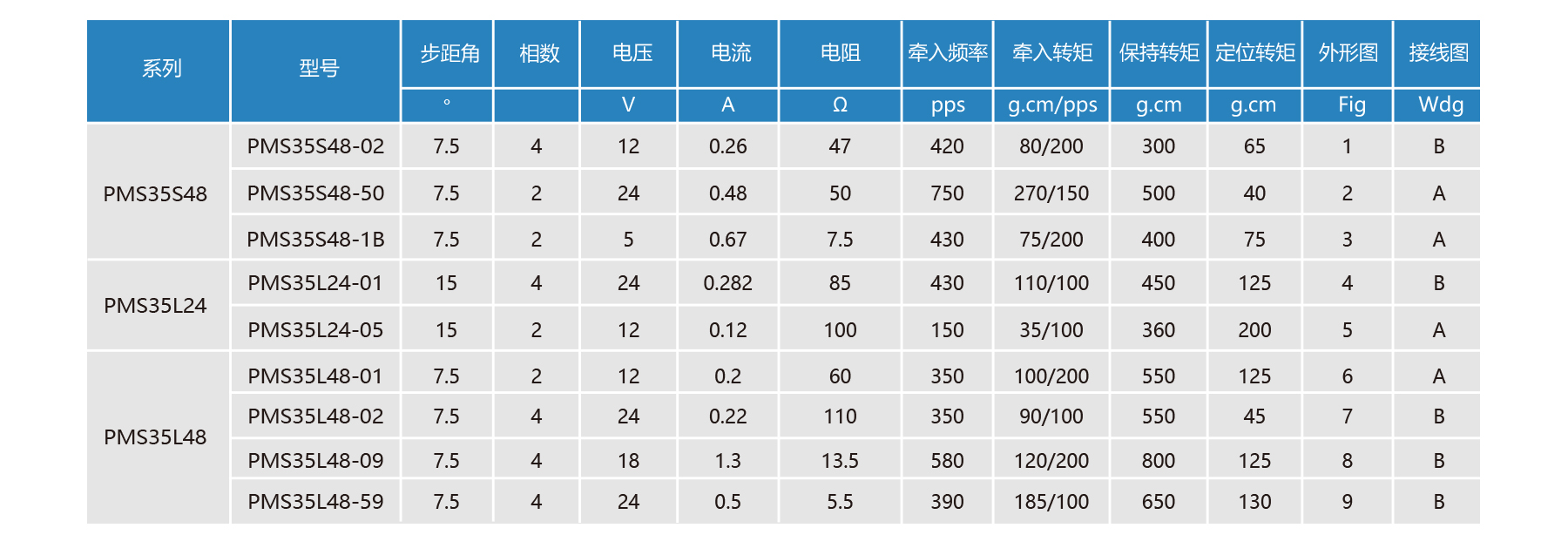 The PMS35 Series permanent magnet stepper motor provides 7.5° or 15° step angles with ±8% accuracy, ±10% resistance, and ±20% inductance precision. Its compact, low-inertia, and fast-response design suits mobile equipment, handheld devices, analytical instrument, and precision automation, reliably operating in -10°C to +50°C environments.