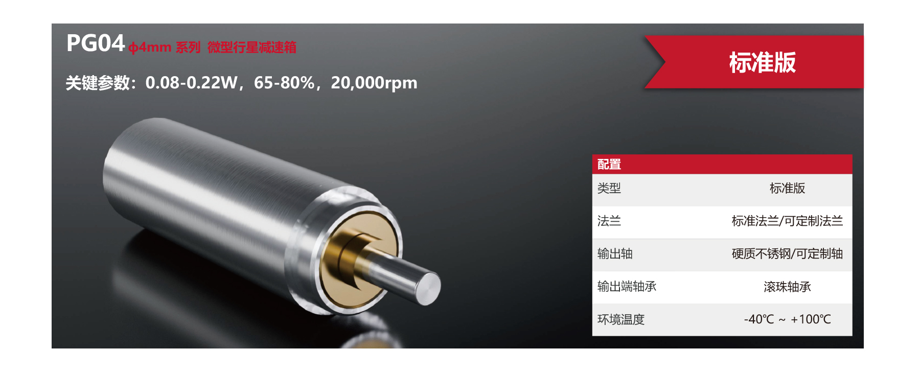 The PG04 4mm Micro Planetary Gearbox offers 3.9:1 to 231:1 ratios in 1–4 stages, delivering up to 0.02 Nm torque with 65–80% efficiency. Its stainless-steel shaft, ball bearing, and slotless coreless motor compatibility ensure precision, durability, and smooth performance in compact applications.
