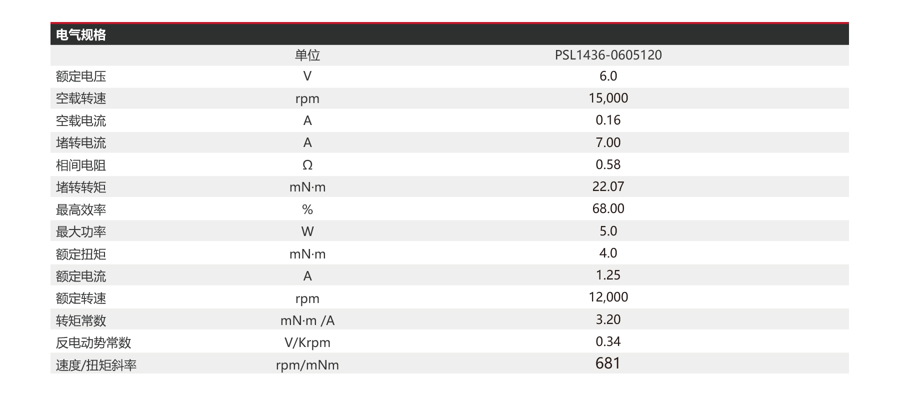 The PSL1436 Slotless BLDC motor offers smooth, cogging-free motion with 6 V rated voltage, 12,000 rpm rated speed, and 68% peak efficiency. Delivering 4 mN·m rated torque and 5 W output, it features high torque density, rapid response, and compact design for robotics, medical equipment, and precision tools.